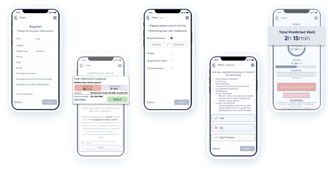 The first ever end-to-end centralized digital platform for patient registration, self-assessment, individualized wait time predictions and ideal care environment redirection.