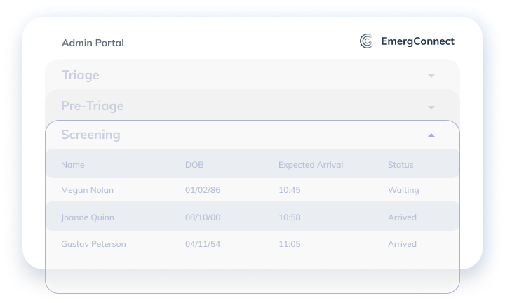 EmergConnect answers the number one question on every patient's mind: How long am I going to wait? EmergConnect uses researched developed AI to predict not just the general wait times, but your wait times.